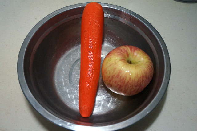 材料:胡蘿卜一根,蘋(píng)果一個(gè)