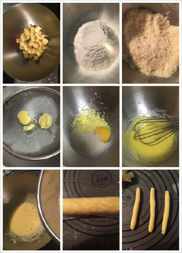 面團(tuán)材料: 熟蛋黃1個(gè)、生蛋黃1個(gè)、糖30克、黃油100克、普通面粉150克