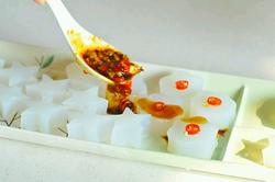 5、小米椒切小圈與調(diào)味料調(diào)成醬汁~倒入涼粉中就可以吃到香香的涼拌涼粉~