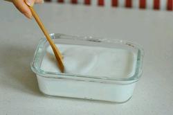 3、倒入鋪好保鮮膜的玻璃盒,放冰箱冷藏至膏狀