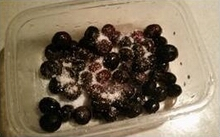 1、冰凍新鮮藍(lán)莓無需解凍,過一道清水,瀝干水份,放入保鮮盒,撒上白糖,待藍(lán)莓解凍后,用小勺將藍(lán)莓碾碎,將現(xiàn)制的藍(lán)莓醬放入冰箱冷藏;