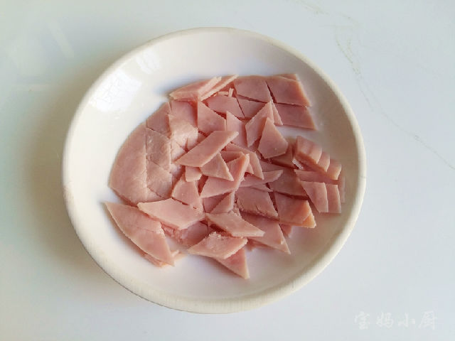 2 食材中的火腿片也可以依據(jù)個(gè)人喜好換成熟五花肉片、肉末,都是很不錯(cuò)的搭配