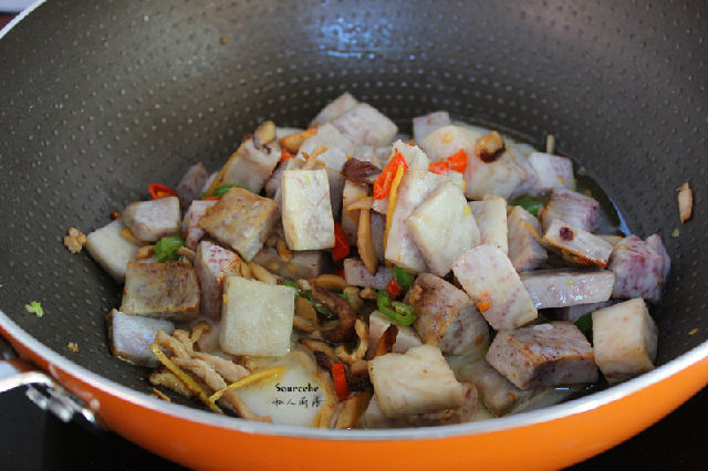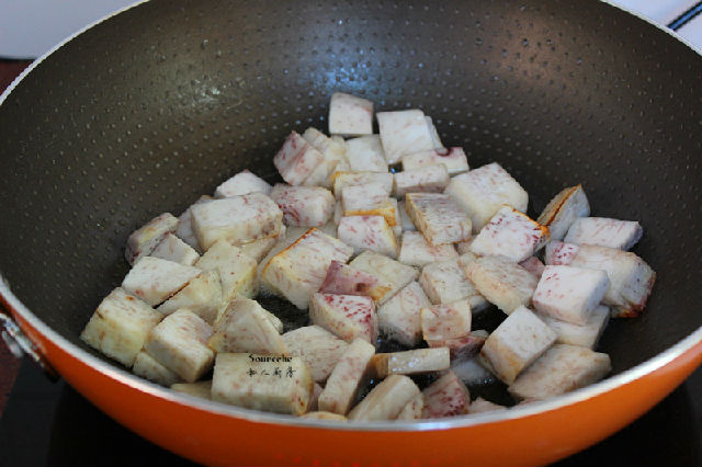 3.掌握好煎炸芋頭的火,剛好即可;