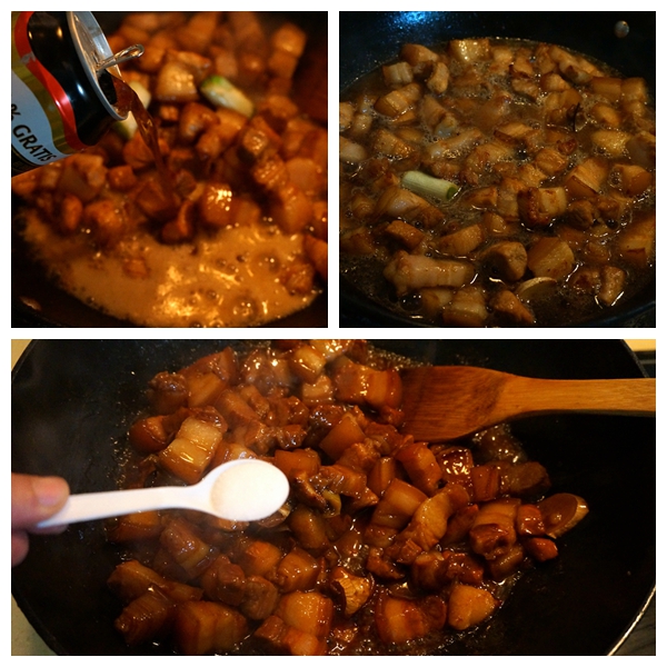 4. 冰糖炒到焦糖色,此步叫炒糖色(shai三音);