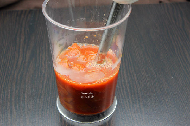 4.放入料理機(jī),打成山楂泥;PS:每個(gè)料理機(jī)不同,沒(méi)有去渣過(guò)濾的要過(guò)濾