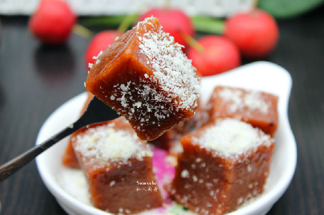 山楂酸甜可口,可以生津開(kāi)胃,冬天吃山楂能很好的生津潤(rùn)燥。椰香山楂糕,山楂加上椰糖、曬上椰蓉,不僅Q彈軟糯,還滿(mǎn)口酸甜椰香。既好看也好吃,老少皆宜,健康零食。