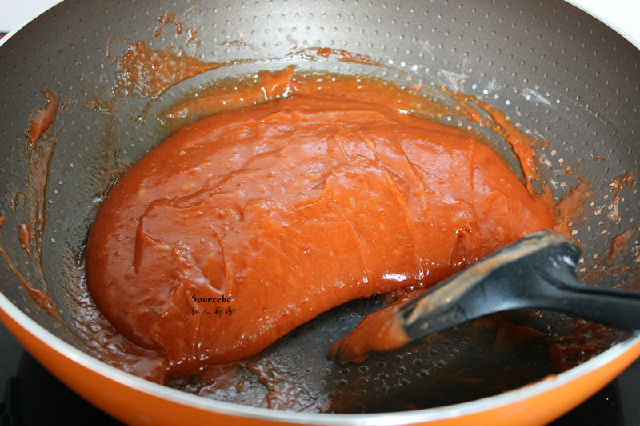 5.把山楂漿倒入不粘鍋;