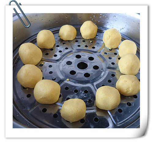 做法:玉米面用熱水燙好,和面?zhèn)溆谩?/p>