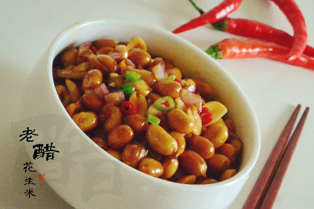 花生米1杯,洋蔥 1/4個(gè),紅辣椒 少許,蔥 1根,陳醋 5湯匙,白糖 3湯匙,生抽2湯匙,鹽 1/2茶匙