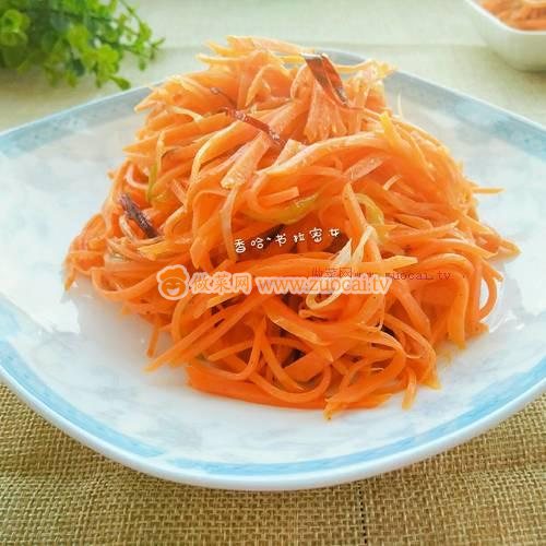 1.胡蘿卜洗凈,切片再切絲。