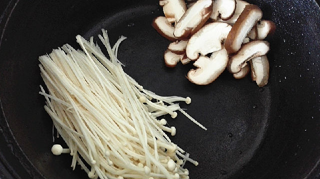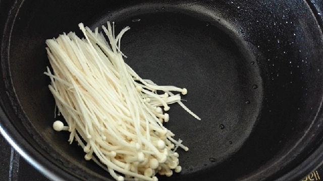 4、首先將金針菇放進(jìn)鍋中。