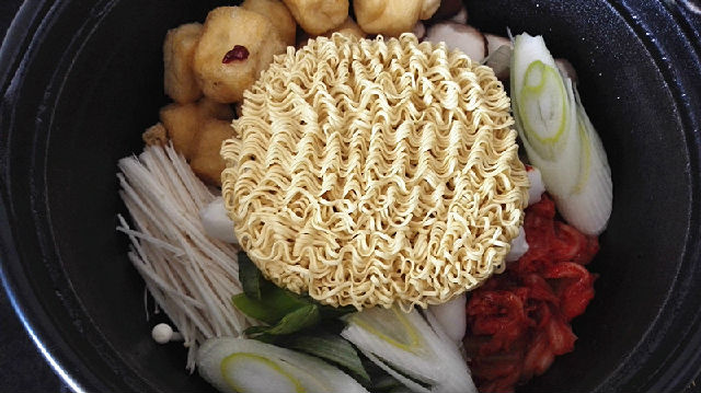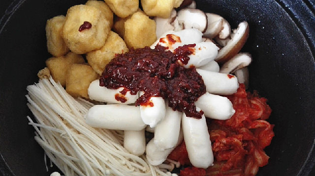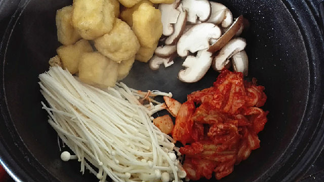 這是一款非常受現(xiàn)代年輕人歡迎的韓式火鍋,制作也極其簡單,只需將金針菇、泡菜、拉面、年糕條、醬等食材全部放入鍋中,再加入高湯或水燉煮,就可以美美的開吃了!