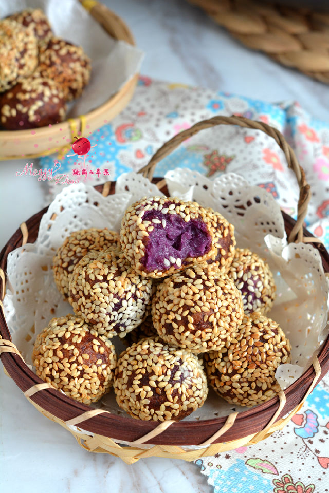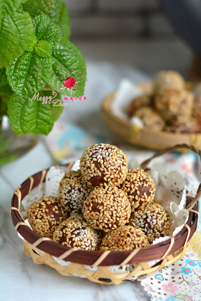 9. 待芝麻變成淡黃色就可以撈出來了,趁熱吃,外焦里嫩,芝麻香、紫薯香,還有少許的糯米軟糯的口感,香極了!
