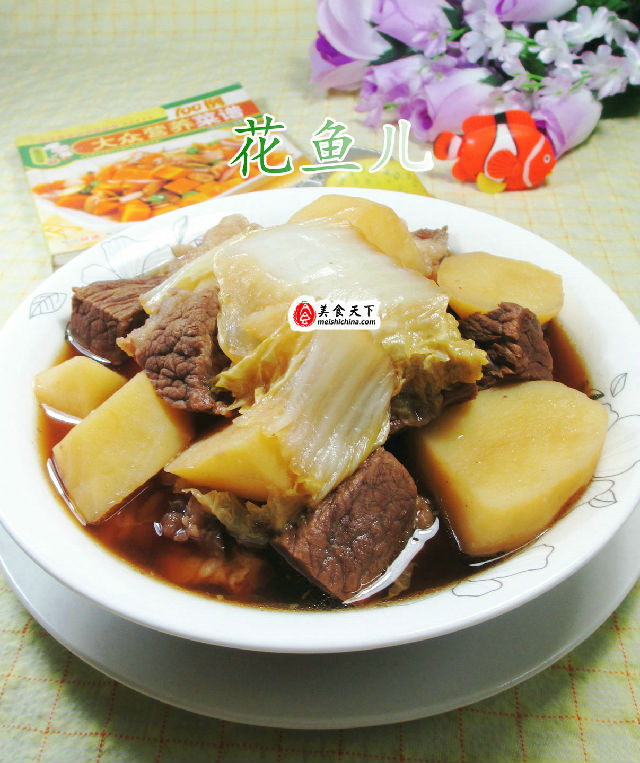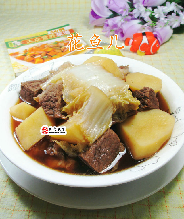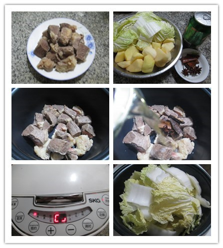 食材:牛腩(已清洗切開焯水)、土豆(已洗凈去皮切開)、白菜(已清洗切開)、桂皮、大料