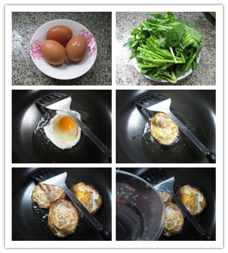 做法:(1)取平底鍋置火上倒點(diǎn)油燒熱,打入雞蛋兩面煎一下,盛出。