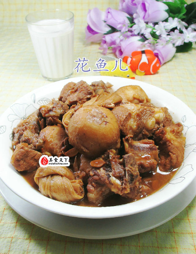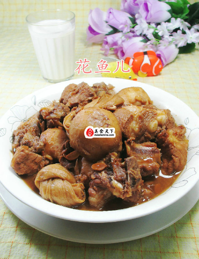 做法:(1)將已焯好的排骨和切好的香芋下入電飯鍋的內(nèi)膽中。