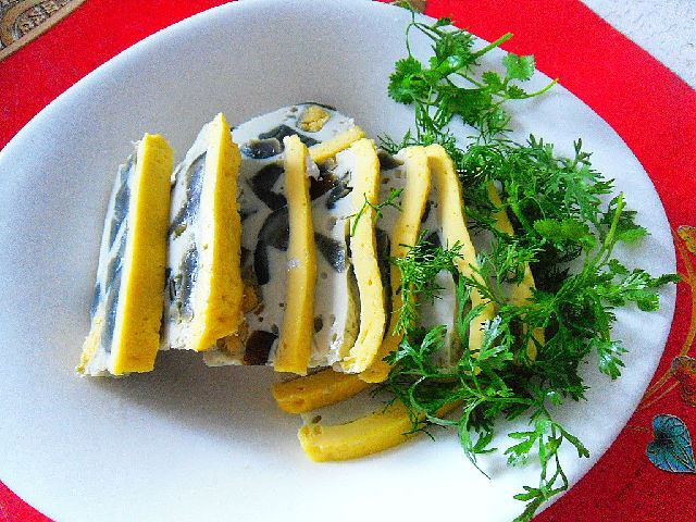 “蒸三蛋”的主料是雞蛋、咸鴨蛋、松花蛋。在這道菜肴里,三種食材各有各的功能,雞蛋是主體,起到凝固作用,其中表面的裝飾靠雞蛋黃;咸鴨蛋主要是提味;松花蛋既要調(diào)色,又要調(diào)味。把三種蛋搭配蒸制后的成品,是一道漂亮的冷盤佳肴。年夜飯的菜譜里怎能少了這道菜呢?點(diǎn)擊查看更多:年夜飯菜譜大全