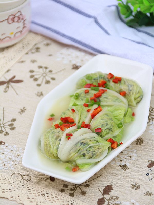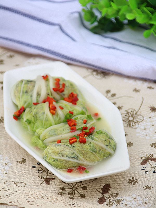 6、包好的白菜卷,擺碟,上鍋蒸約8-10分鐘。