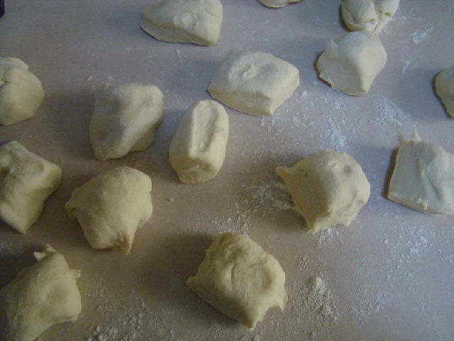 4,醒5分鐘,將面團(tuán)下成小一點(diǎn)的劑子。