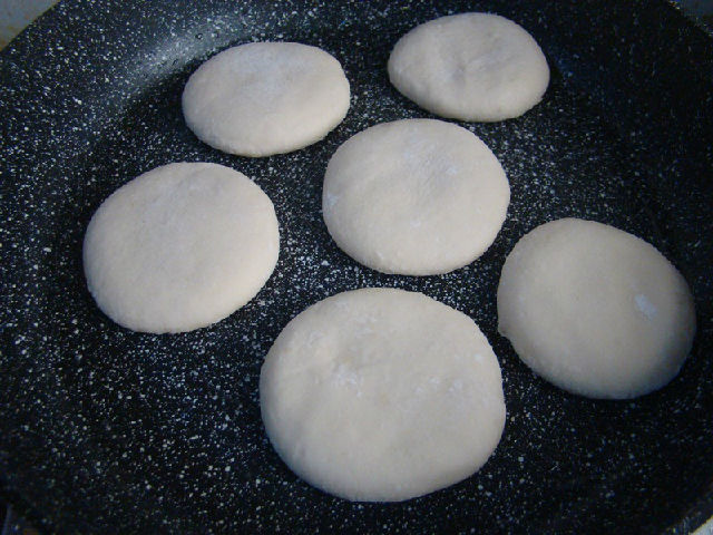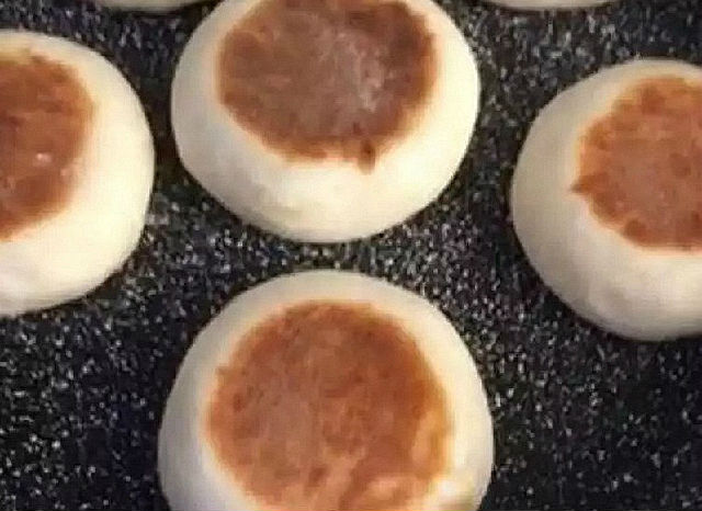 9,平底鍋預(yù)熱,刷上薄薄一層油,放入生坯。