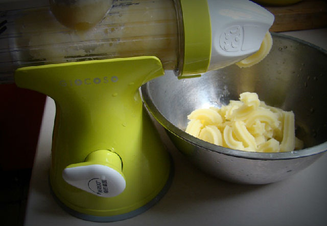 3,土豆泥和面粉(比例為1:1)倒入容器內(nèi),加入事先用少許溫水溶解的糖和酵母稍微拌勻,然后分次加入牛奶揉成光滑適當(dāng)?shù)拿鎴F(tuán),其軟硬程度與餃子面團(tuán)差不多。
