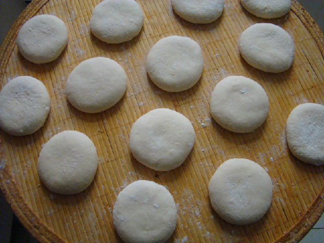 7,收口朝下,輕輕摁扁,生坯就做好了。