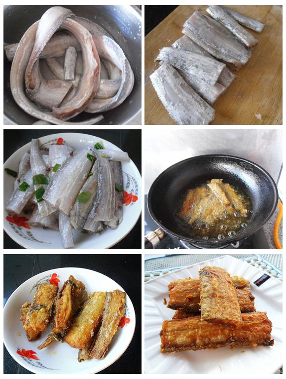 1、把帶魚去頭尾、去內(nèi)臟,反復洗凈。