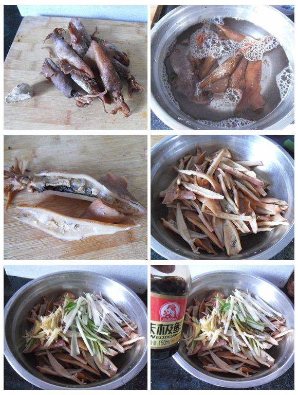 1、把烏賊干泡發(fā)2小時(shí)左右,泡軟就可以用了。