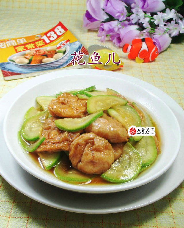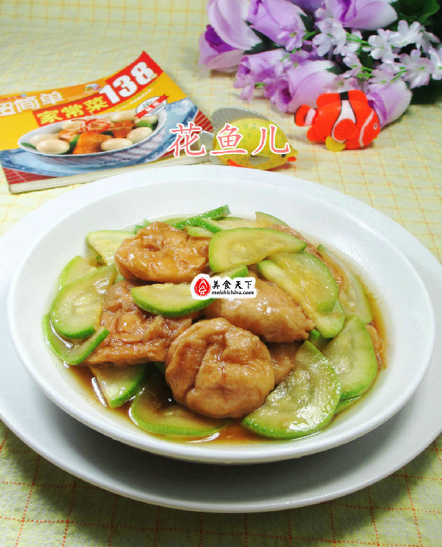 (2)接著,合入油面筋,加適量的清水翻炒翻炒至熟。