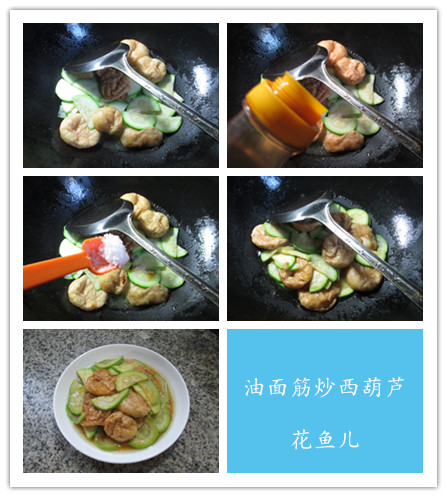 做法:(1)燒鍋倒油燒熱,下入切好的西葫蘆翻炒一下。