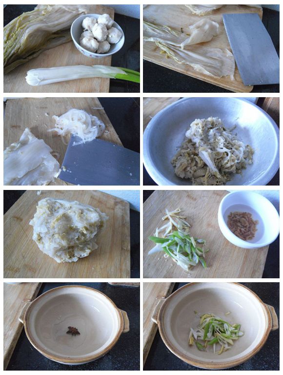同樣的食材用不同的鍋具烹制,特別是砂鍋,味道會截然不同,信不信由你。這里介紹的“魚丸酸菜煲”用的酸菜是東北的酸菜,也就是用大白菜腌漬的,經(jīng)典的東北菜肴“汆白肉”就離不開這種酸菜。