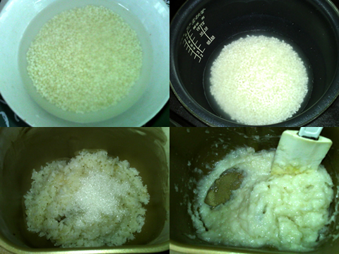 1、糯米洗凈,用水浸泡4小時(shí)。放入電飯煲,加水沒(méi)過(guò)米粒約1厘米,按煮飯鍵,煮20分鐘。將煮熟的糯米飯趁熱放入面包機(jī)中,加入糖,啟動(dòng)和面功能。糯米飯被攪拌出黏勁,取出,備用。
