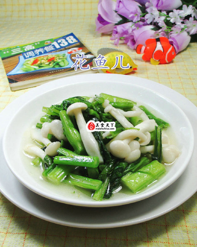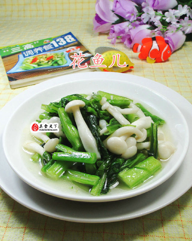 食材:白玉菇(已清洗)、油菜蕻(已洗凈)