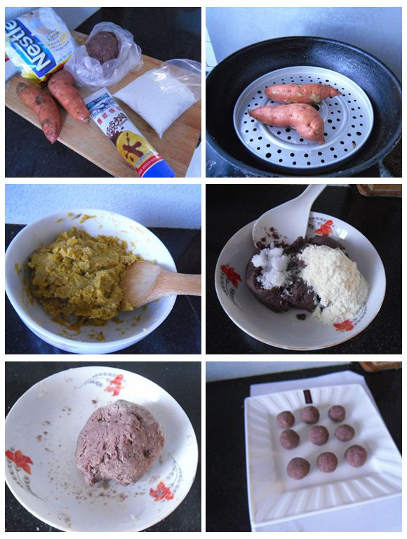 1、主輔料:紅薯、紅豆泥、煉乳、白糖、奶粉、椰蓉。