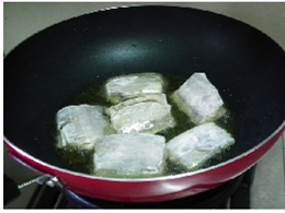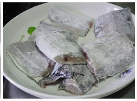 4、帶魚用吸油紙吸干水分后拍上一層干粉