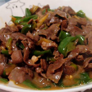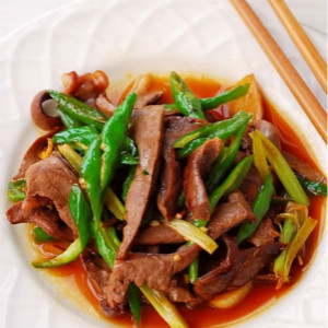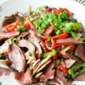 原料:豬心500克、柿子椒180克、食鹽、蔥、姜、調(diào)和油。