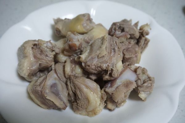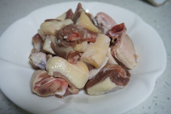 2、將鴨肉洗凈切塊,鍋中入清水煮開后放入鴨肉焯水,撇去表面的浮抹,撈出瀝干水分備用。