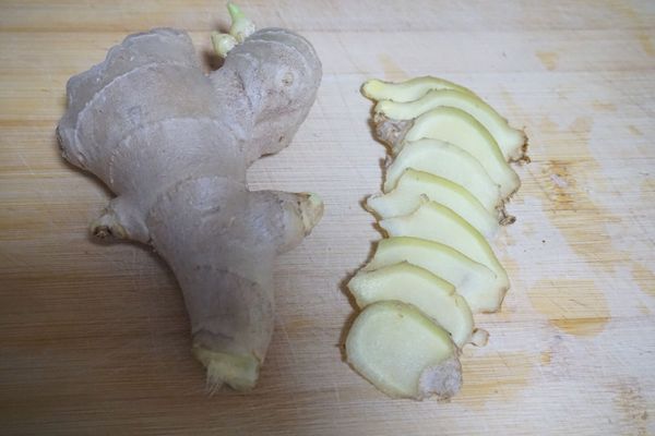 1、老姜洗凈,切適量成片。