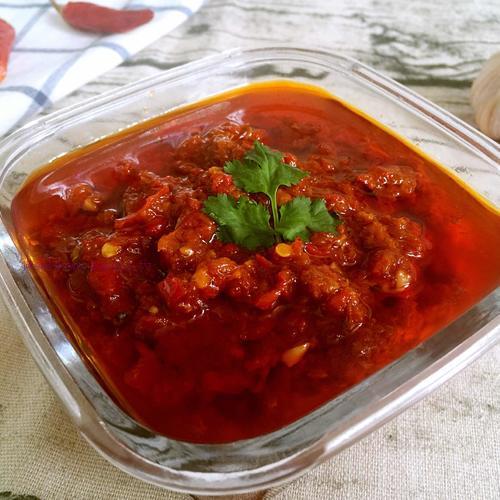 紅辣椒(400克) 香其醬(1袋) 玉米油(3湯匙) 鹽(適量)