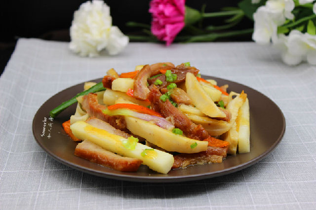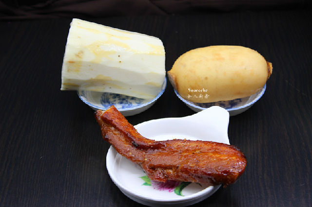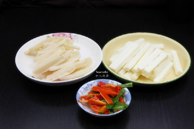 1.主食材:山藥300克、蓮藕300克、叉燒150克