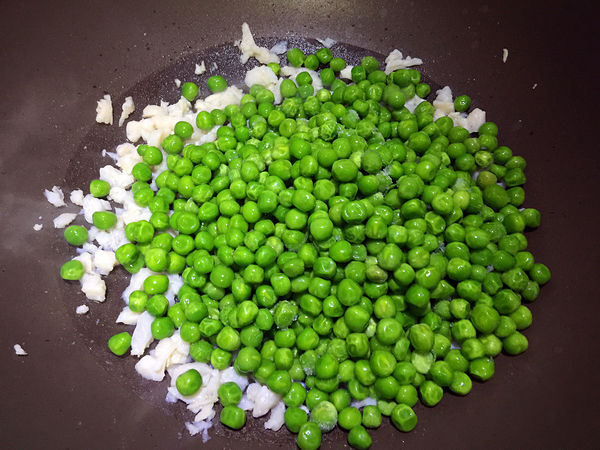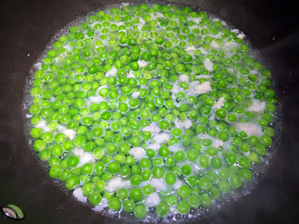 倒入化凍的速凍豌豆