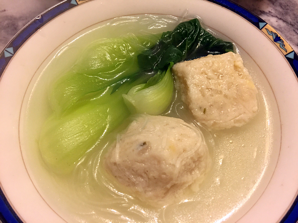 丸子冷水下鍋煮后會(huì)更嫩更軟,沒有肉腥味兒,因?yàn)橹饕嵌垢?,這也是低脂低熱的秘訣吧,暖暖的喝口湯,一天的疲勞都驅(qū)散了