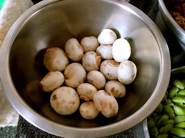 材料 蘑菇,毛豆,肉泥