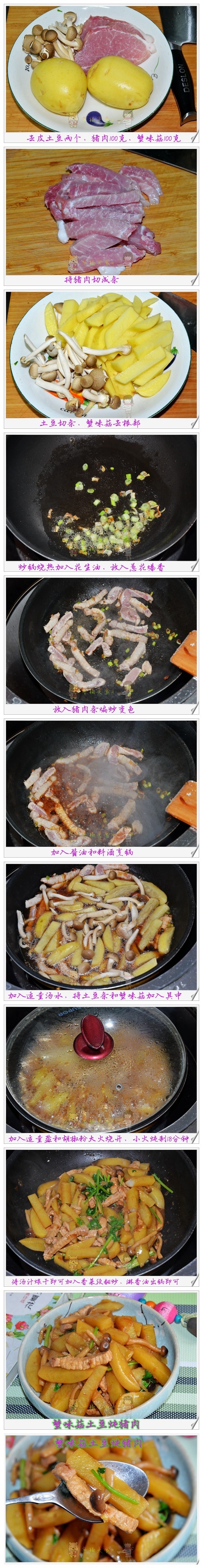 幸福小貼士:1、豬肉如果喜歡吃香一點的,可以換成帶皮豬五花肉,那樣香氣更足一些。2、土豆切條的粗細程度根據豬肉的品質,如果是豬后腿肉就不要切太粗,因為豬腿肉不吃火。如果用豬五花肉制作那么就要切的稍微粗一些,這樣多燉一會味道會更好!