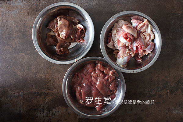 主料:雞心、雞胗和雞肝各100克