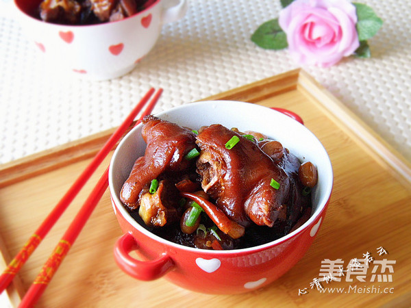 2、豬蹄建議選用豬前蹄,豬前蹄肉多骨小,最好是沒有抽去筋的豬蹄。洗凈豬蹄,用開水煮到皮發(fā)脹,然后取出用指鉗將毛拔除,省力省時;