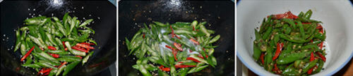 4、稍微疲軟后加入2.5克食鹽,繼續(xù)干煸至表面呈虎皮。