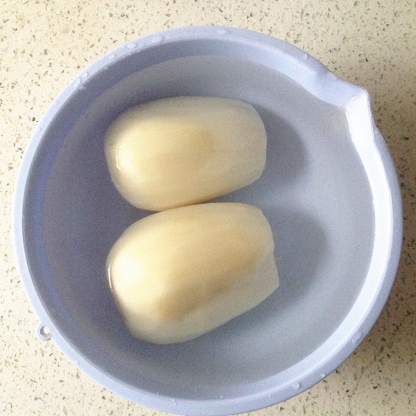 1、把藕皮刮凈清洗后,浸泡清水中讓藕眼里面的污物浮出。