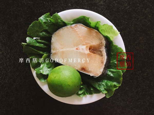 2. 青檸洗凈。阿拉斯加黑鱈魚在室溫下解凍。
