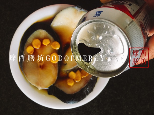 食材:阿拉斯加黑鱈魚3塊鹽2勺生姜1個生抽2勺味極鮮1勺白糖2勺胡椒粉1勺料酒2勺啤酒1罐青檸2片